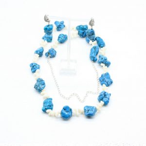 Handcrafted imitation Pearl & Pearl teardrop necklace with earrings. This stylish & elegant jewellery is suitable for all occassions, wedding, christening, birthday etc